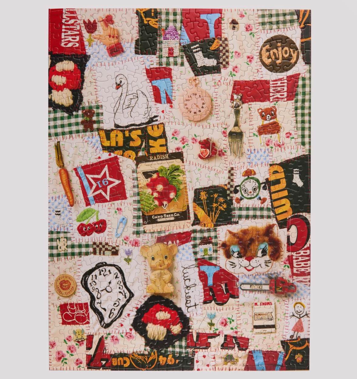 A 500-piece jigsaw puzzle made to cherish forever in collaboration with textile artist Kristine Reano-Hager. Featuring a quilt made from scraps, objects, memories and love.