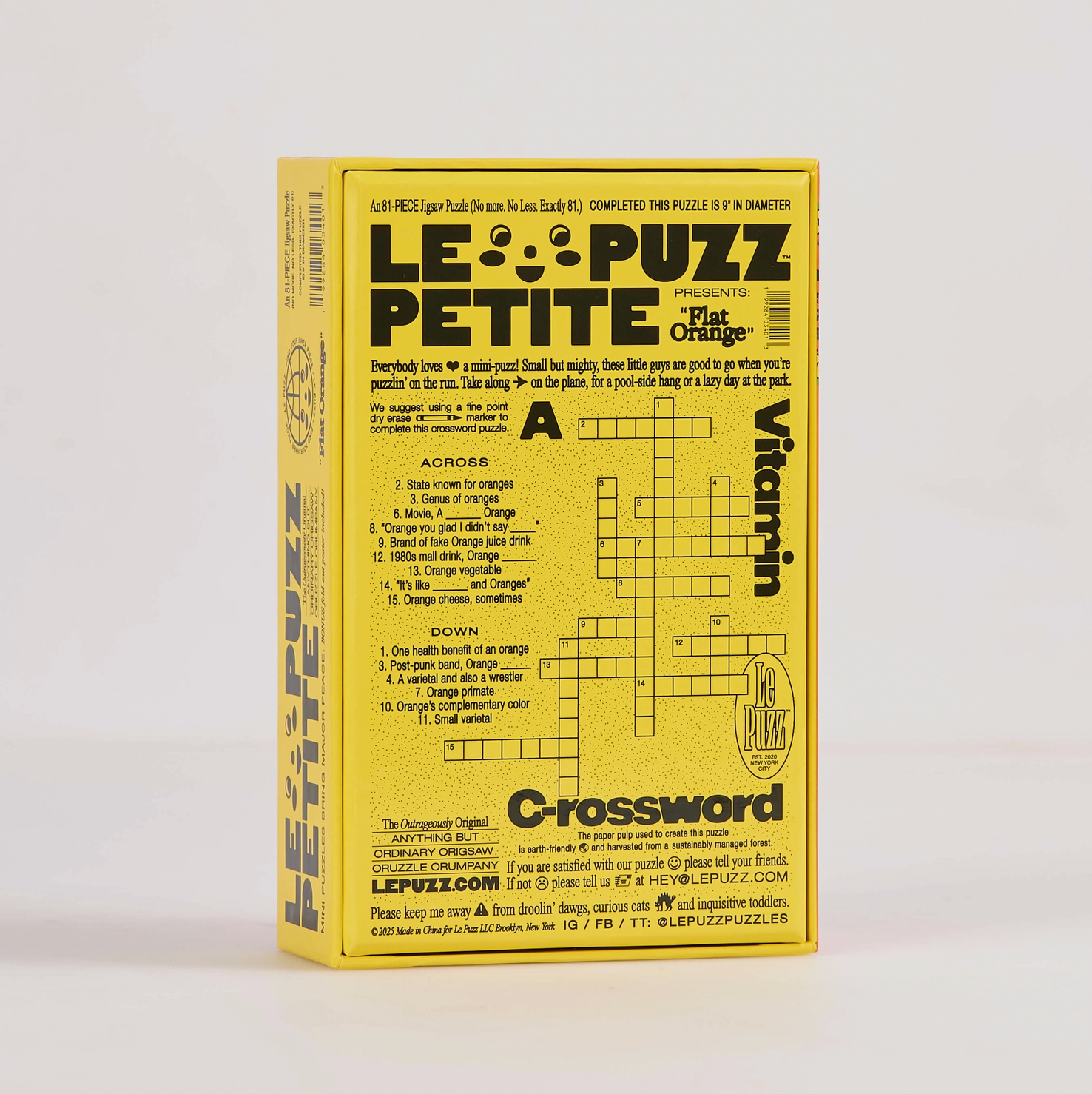 A miniature, round, solid-orange, 81-piece jigsaw puzzle that's as flat as an orange ... as they say!