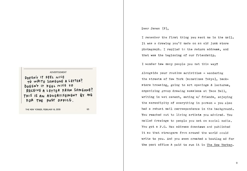 The Post Office celebrates the whimsical mail art of beloved illustrator Jason Polan, known for his lively sketches and the cult classic Every Person in New York. Gathering letters, drawings, and exchanges with friends, fans, and fellow artists—including Marcel Dzama and Stefan Marx—the book reveals Polan’s deep affection for the USPS and his belief in art as connection. Playful and poignant, it offers an intimate portrait of an artist whose creativity thrived through everyday correspondence.