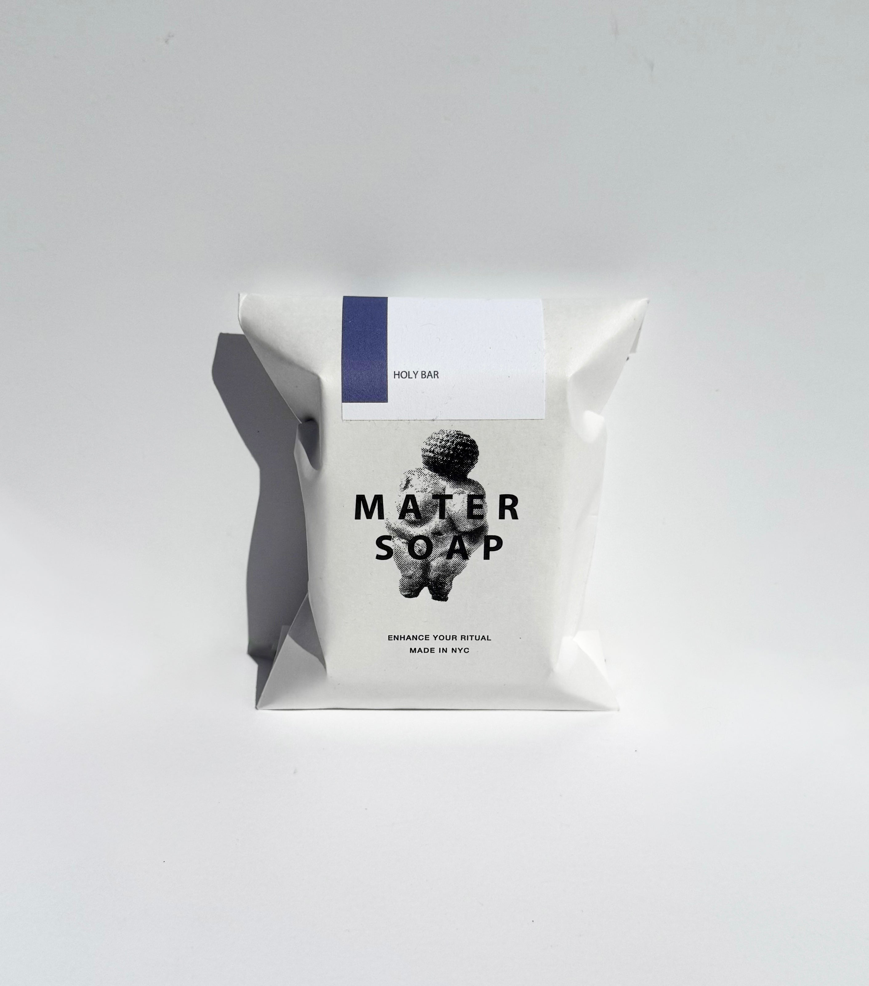 Holy Bar, a spiritual awakener, combines the royal essential oils of purifying palo santo and calming lavender in a delicate and supremely sudsy castile soap.