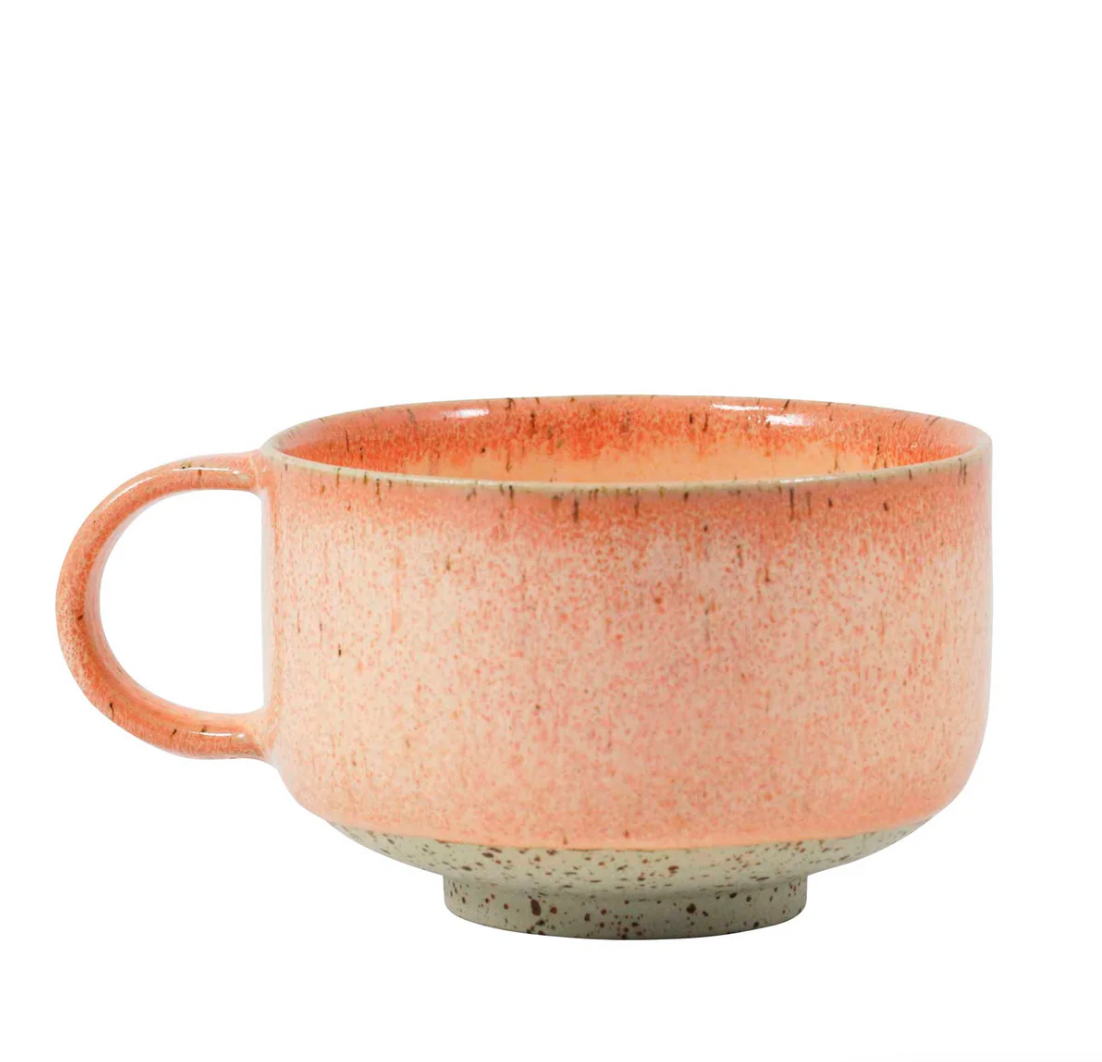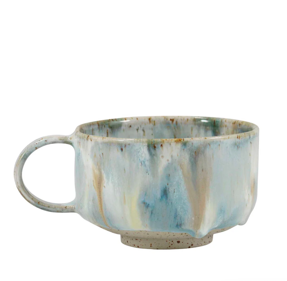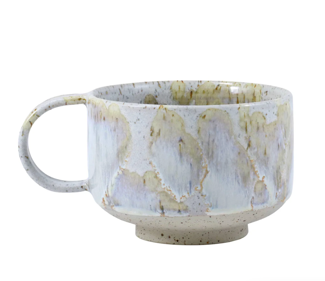 The Mion Mug is a hand thrown stoneware mug (with handle) available in various textured, earthy and colorful glazes.
