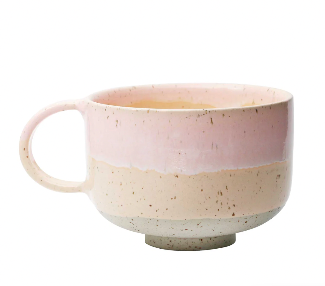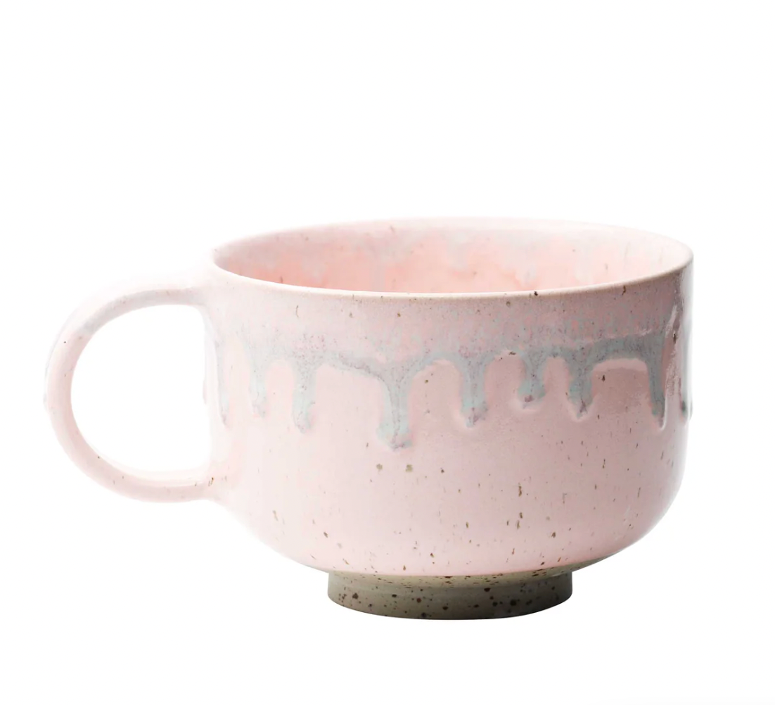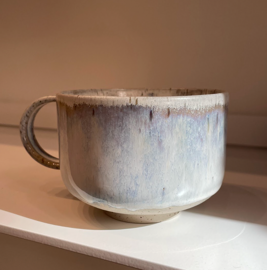 The Mion Mug is a hand thrown stoneware mug (with handle) available in various textured, earthy and colorful glazes.