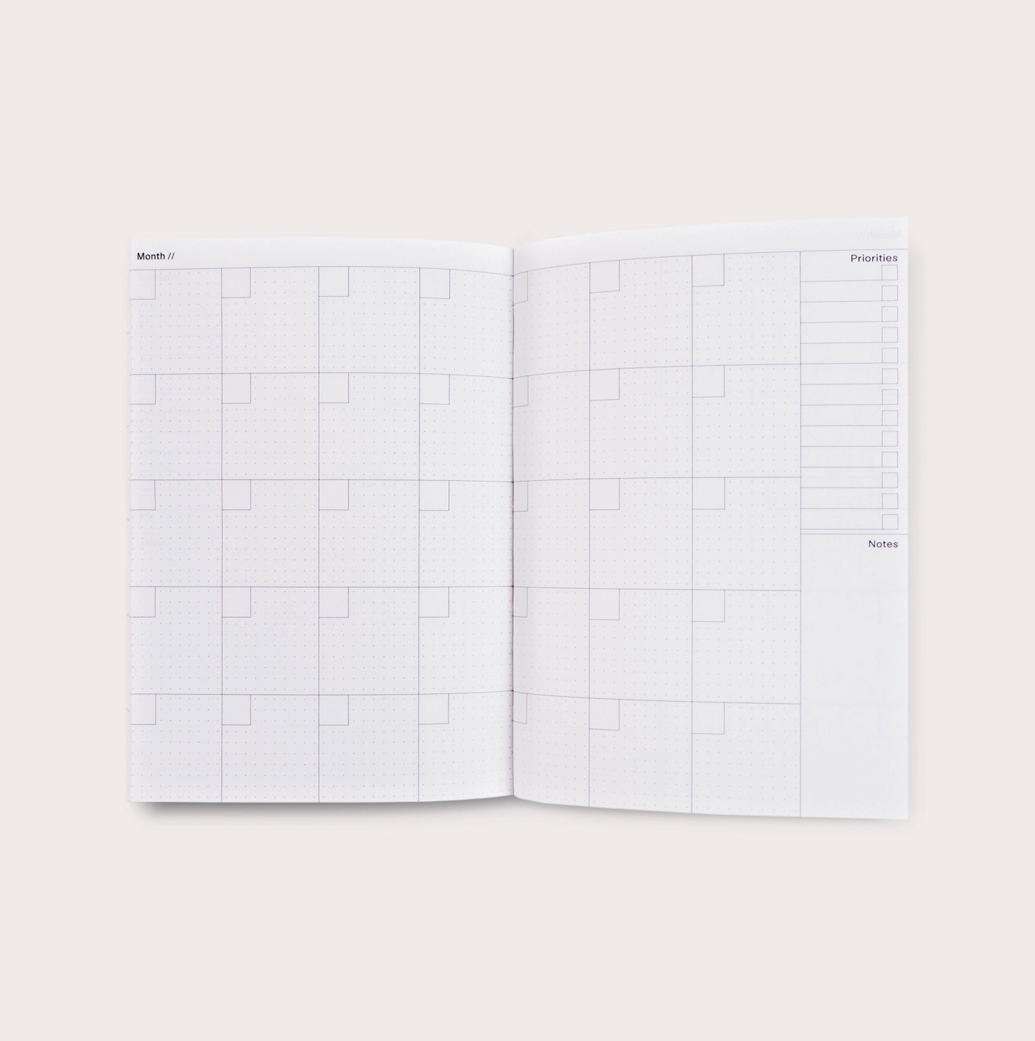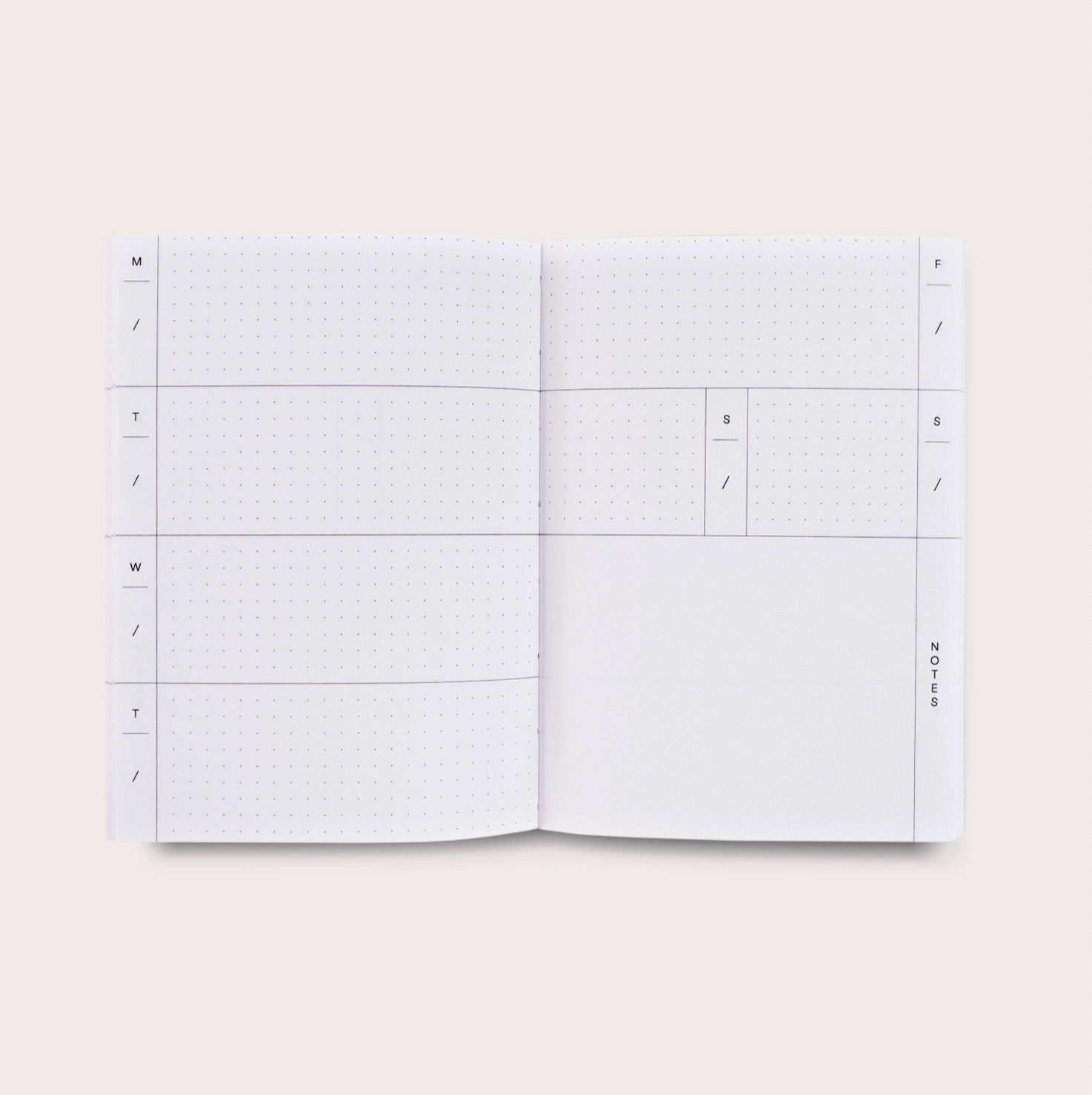 This is a 128 page pocket sized undated layflat weekly planner. It has a 2 page spread for each week - there's 52 weeks and 12 months in total and it comes with a matching bookmark.
