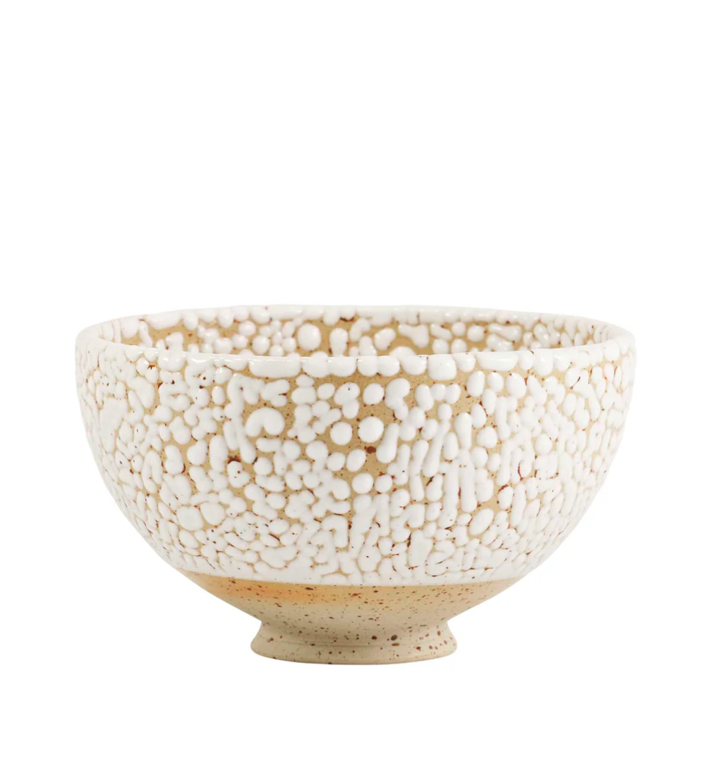 The Sun Bowl by Studio Arhoj is a playful, speckled stoneware bowl, hand-thrown and dipped in a rainbow of natural glazes. Perfect for a bowl of cereal, a scoop of ice cream, or a handful of candy, its small foot keeps it steady and your treats secure.
