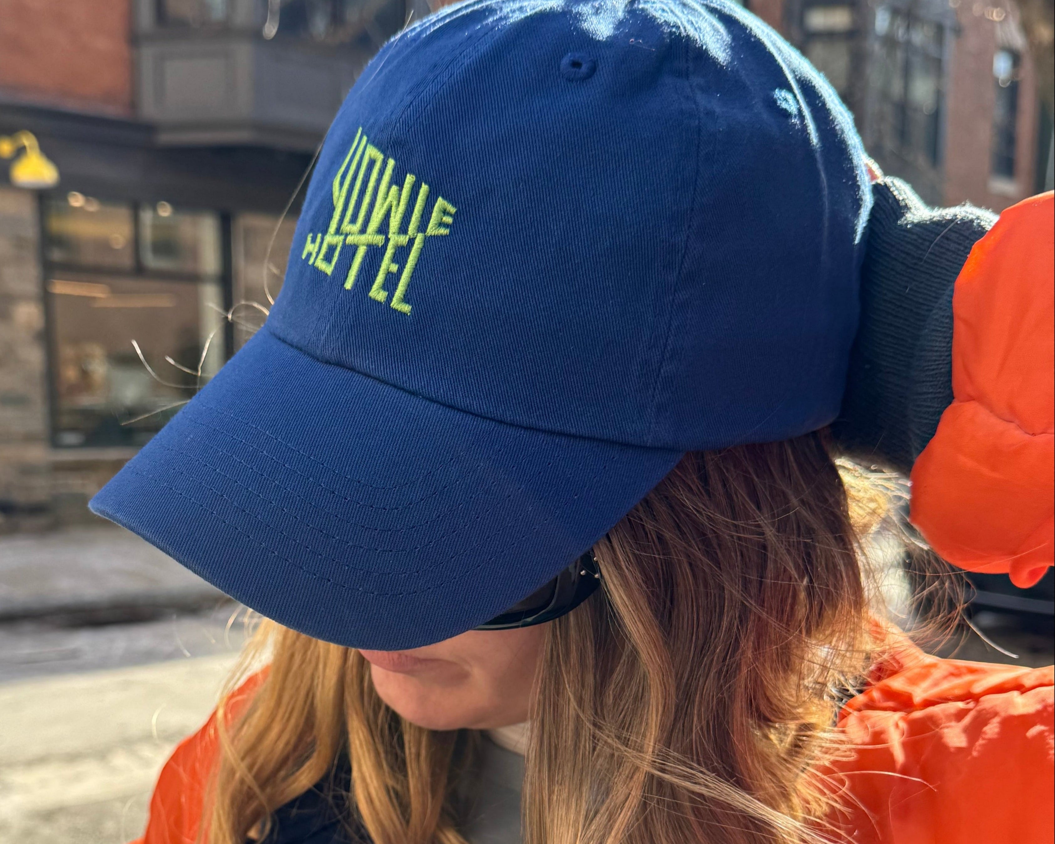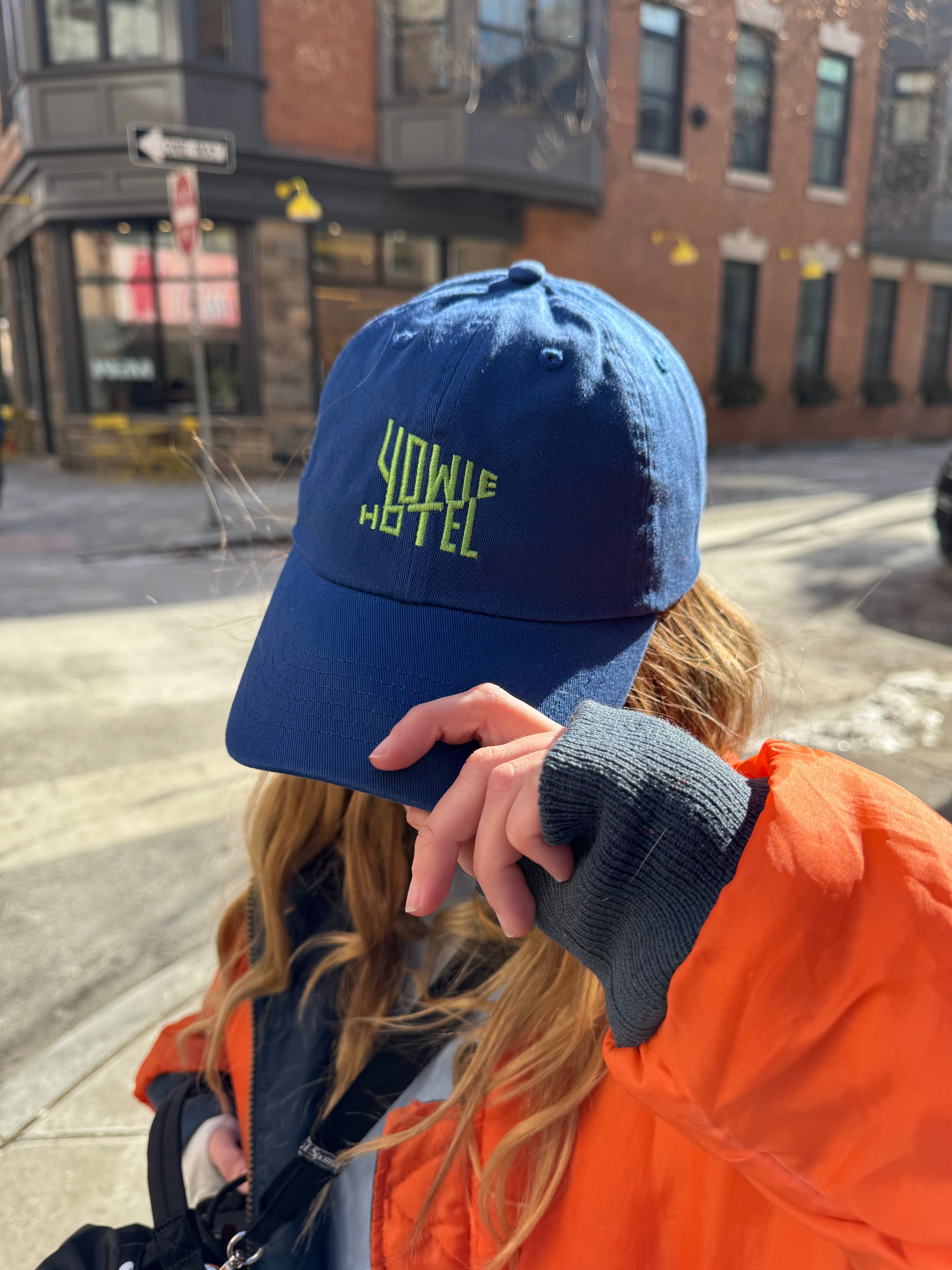 Who needs a crown when you can have a Yowie Hotel Dad Hat? Royal blue with green embroidery. 100% cotton twill and made in Philadelphia.